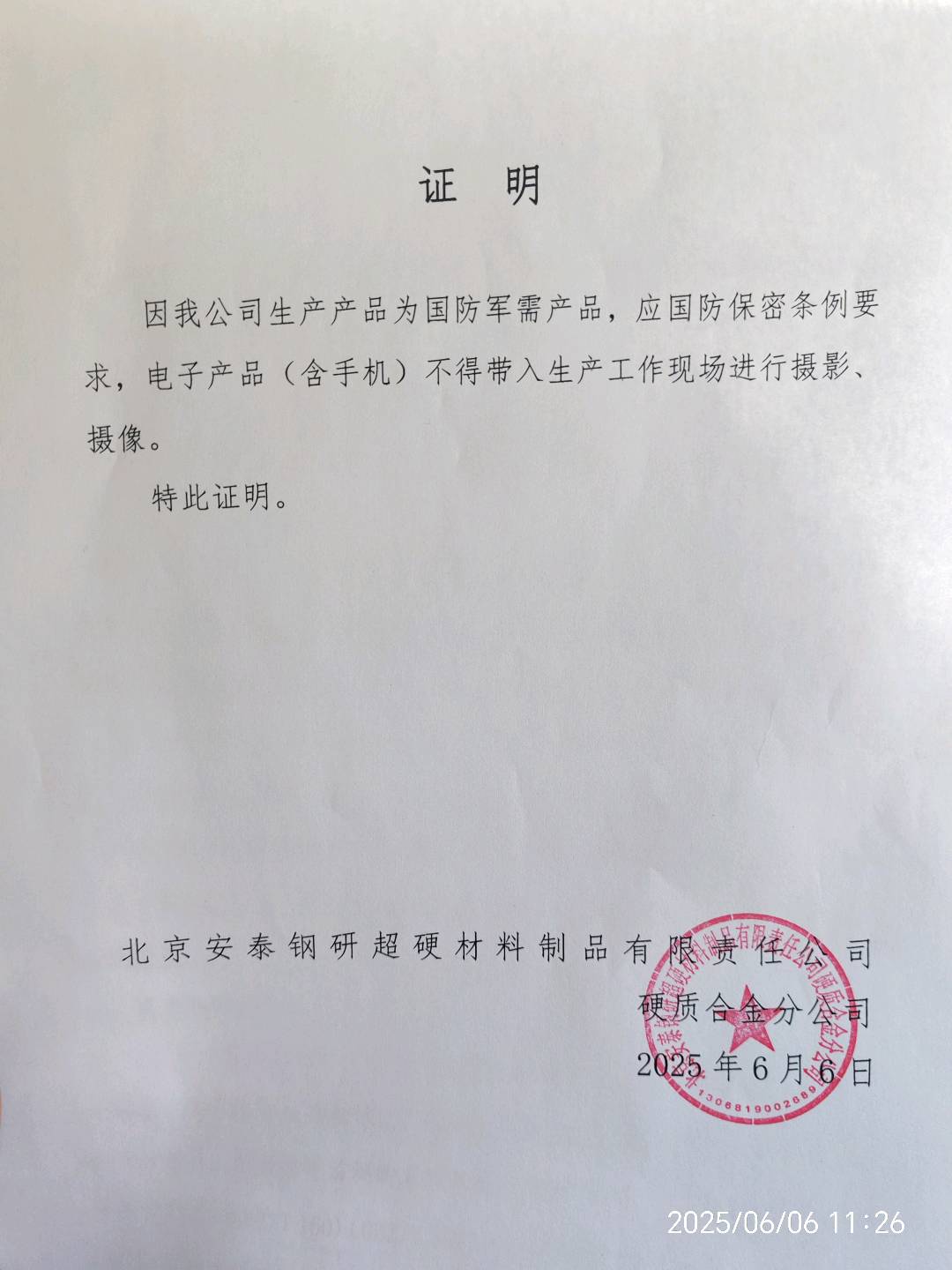 北京安泰钢研超硬材料制品有限责任公司硬质合金分公司定期检测