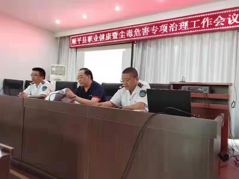 2019年7月10日我公司洪福磊和李雪峰到顺平组织开展了顺平县职业健康暨尘毒危害专项治理工作会议。